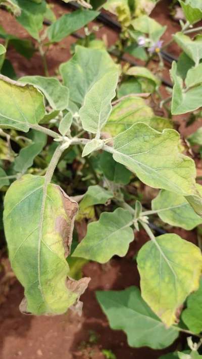ಹೆಲೋ Chethan Gowda. ತಡವಾಗಿ ಉತ್ತರಿಸಿದಕ್ಕೆ ಕ್ಷಮೆ ಇರಲಿ. ಈ ಚಿತ್ರದ ಪ್ರಕಾರವಾಗಿ ಮತ್ತು ತಮ್ಮ ಅನಿಸಿಕೆಯಂತೆ, ತಮ್ಮ ಬದನೆಕಾಯಿ ಬೆಳೆಗೆ Verticillium Wilt ರೋಗ ಇರಬಹುದು ಅನಿಸುತ್ತಿದೆ. ಇಲ್ಲಿ ತೋರಿಸಿದ ಹಸಿರು ಬಣ್ಣದ ಅಕ್ಷರಗಳ ಲಿಂಕ್ ಮೇಲೆ ಬೆರಳು ಒತ್ತಿ ಹತೋಟಿ ಕ್ರಮಗಳು ಅನುಸರಿಸಿರಿ.