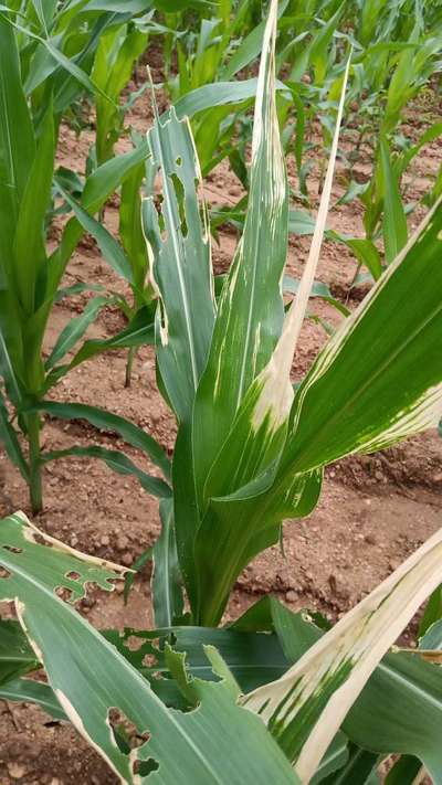 ಹೆಲೋ ಯರ್ರಿ ಸ್ವಾಮಿ.. Db. ಈ ಚಿತ್ರದ ಪ್ರಕಾರವಾಗಿ, ತಮ್ಮ ಮೆಕ್ಕೆಜೋಳದ ಬೆಳೆಗೆ Banded Leaf and Sheath Blight ರೋಗ ಮತ್ತು Tobacco Caterpillar ಕೀಟದ ಭಾಧೆ ತಗುಲಿದೆ ಅನಿಸುತ್ತಿದೆ. ಇಲ್ಲಿ ತೋರಿಸಿದ ಹಸಿರು ಬಣ್ಣದ ಅಕ್ಷರಗಳ ಲಿಂಕಗಳ ಮೇಲೆ ಬೆರಳು ಒತ್ತಿ ಹತೋಟಿ ಕ್ರಮಗಳು ಅನುಸರಿಸಿರಿ.