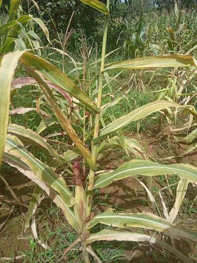 ಹೆಲೋ Devaraja.K M. ಈ ಚಿತ್ರದ ಪ್ರಕಾರವಾಗಿ, ತಮ್ಮ ಮೆಕ್ಕೆಜೋಳದ ಬೆಳೆಗೆ ತೀವ್ರಗತಿಯಲ್ಲಿ Potassium Deficiency, Maize Bushy Stunt Phytoplasma ರೋಗ ತಲುಲಿದೆ ಅನಿಸುತ್ತಿದೆ. ಆದರೆ ಖಾತ್ರಿ ಇಲ್ಲ. ಆದುದರಿಂದ ತಾವು ಇಲ್ಲಿ ತೋರಿಸಿದ ಹಸಿರು ಬಣ್ಣದ ಅಕ್ಷರಗಳ ಲಿಂಕಗಳ ಮೇಲೆ ಬೆರಳು ಒತ್ತಿ ಹತೋಟಿ ಕ್ರಮಗಳು ಅನುಸರಿಸಿರಿ.
