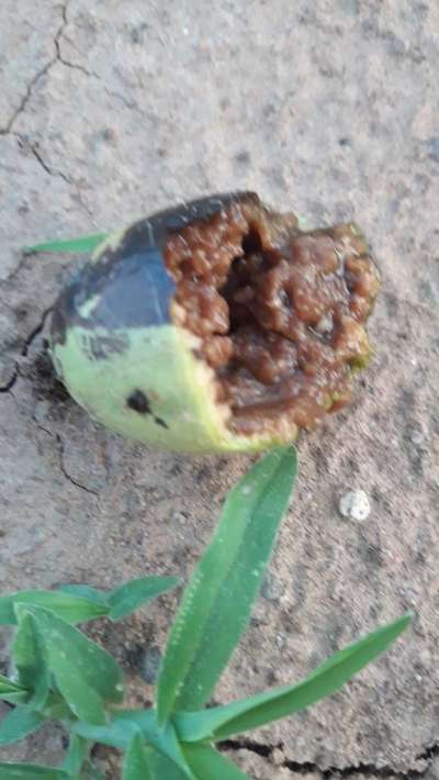 ಎಲೆಗಳು ತಿರುಗಿಕೊಂಡು, ಹಳದಿ ಮಿಶ್ರಿತ ಗೊಂಡಿವೆ.ಬಳ್ಳಿಯ ಕಾಂಡವು ಸೀಳು ಬಿಟ್ಟಿವೆ.