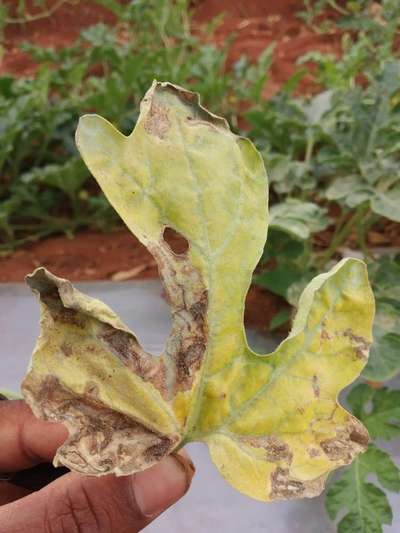 ಕಲ್ಲಂಗಡಿ ಎಲೆ ಹಳದಿ ಬಣ್ಣಕ್ಕೆ ತಿರುಗಿ ಒಣಗುತ್ತದೆ