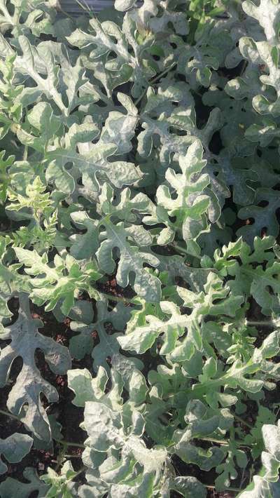 ಹೆಲೋ Bharatesh Ghodageri. ಈ ಚಿತ್ರದ ಪ್ರಕಾರವಾಗಿ, ತಮ್ಮ ಕಲ್ಲಂಗಡಿ ಬೆಳೆಗೆ ಪ್ರಾರಂಭ ಹಂತದ Powdery Mildew ರೋಗ ತಲುಲಿದೆ ಅನಿಸುತ್ತಿದೆ. ಇಲ್ಲಿ ತೋರಿಸಿದ ಹಸಿರು ಬಣ್ಣದ ಅಕ್ಷರಗಳ ಲಿಂಕ್ ಮೇಲೆ ಬೆರಳು ಒತ್ತಿ, ಪ್ಲ್ಯಾಟಿಕ್ಸ ಗ್ರಂಥಾಲಯವನ್ನು ಸಮ್ಪರ್ಕಿಸಿ, ಗುಣಲಕ್ಷಣಗಳನ್ನು ಸರಿಯಾಗಿ ತಿಳಿದುಕೊಂಡು, ಅಲ್ಲಿ ತೋರಿಸಿದ ಸರಿಯಾದ ಮುಂಜಾಗರೂಕತೆಯ ಕ್ರಮಗಳು ಮತ್ತು ಚಿಕಿತ್ಸಾ ಕ್ರಮಗಳು ತಕ್ಷಣ ಅನುಸರಿಸಿರಿ. ಬೇರೆ ಏನಾದರು ತೊಂದರೆ ಇದ್ದರೆ, ಇನ್ನೊಮ್ಮೆ ಇನ್ನಷ್ಟು ಚಿತ್ರಗಳೊಂದಿಗೆ ಸಮಂಜಸ ಪ್ರಶ್ನೆಗಳು ಕಳುಹಿಸಿ ಮಾಹಿತಿ ಪಡೆಯಿರಿ.
