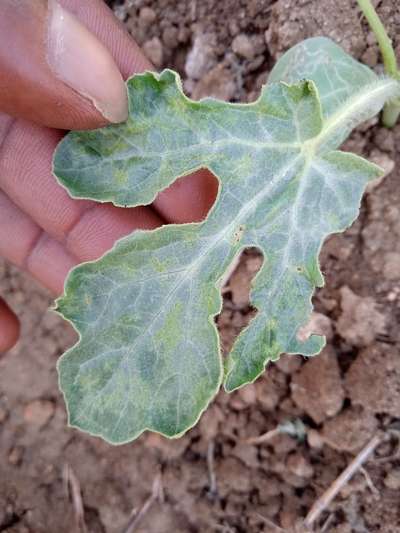 ಹೆಲೋ Dileep Kumar. ಈ ಚಿತ್ರದ ಪ್ರಕಾರವಾಗಿ, ತಮ್ಮ ಕಲ್ಲಂಗಡಿ ಬೆಳೆಗೆ ಪ್ರಾರಂಭ ಹಂತದ Thrips ಕೀಟ ಮತ್ತು Downy Mildew of Cucurbits ರೋಗ ಭಾಧೆ ತಗುಲಿದೆ ಅನಿಸುತ್ತಿದೆ. ಇಲ್ಲಿ ತೋರಿಸಿದ ಹಸಿರು ಬಣ್ಣದ ಅಕ್ಷರಗಳ ಲಿಂಕಗಳ ಮೇಲೆ ಬೆರಳು ಒತ್ತಿ ಹತೋಟಿ ಕ್ರಮಗಳು ಅನುಸರಿಸಿರಿ. ಜೊತೆಗೆ ತಮಗೆ ಗೋತ್ತಿರುವಂತೆ, ಕಲ್ಲಂಗಡಿ ಬೆಳೆಯ ಒಳ್ಳೆಯ ಬೆಳವಣಿಗೆ ಮತ್ತು ಇಳುವರಿ ಪಡೆಯಲು, ಸಾಕಷ್ಟು ಪ್ರಮಾಣದಲ್ಲಿ ಚನ್ನಾಗಿ ಕೊಳೆತ ಕೊಟ್ಟಿಗೆ ಗೊಬ್ಬರ ಅಥವಾ ಎರೆ ಹುಳು ಗೊಬ್ಬರದ ಜೊತೆಗೆ ತಮ್ಮ ಭಾಗದ ಕಲ್ಲಂಗಡಿ ಬೆಳೆಗೆ ಶಿಫಾರಸಿನ ಪ್ರಮಾಣದಲ್ಲಿ ರಾಸಾಯನಿಕ ಗೊಬ್ಬರಗಳು ಕೊಡಬೇಕು ಅಥವಾ ಇಲ್ಲಿ ಪ್ಲ್ಯಾಟಿಕ್ಸ ನ ಹೊಂ ಪೇಜನಲ್ಲಿ ಕೊಟ್ಟಿರುವ ರಸಗೊಬ್ಬರಗಳ ಕ್ಯಾಲ್ಕುಲೇಟರ ಬಳಸಿಕೊಂಡು ರಾಸಾಯನಿಕ ಗೊಬ್ಬರಗಳು ಕೊಡಬಹುದು. ಇದಲ್ಲದೆ, ತಾವು ಪ್ಲಾಂಟಿಕ್ಸ್ ನ ಹೊಂ ಪೇಜನಲ್ಲಿ ತಮ್ಮ ಅನುಕೂಲಕ್ಕೆ ಕೊಟ್ಟಿರುವ ಕಲ್ಲಂಗಡಿ ಬೆಳೆಯ "ಕೃಷಿ ಸಲಹೆಯನ್ನು" ಉಪಯೋಗಿಸಿಕೊಳ್ಳಿರಿ ಅಥವಾ ರಚಿಸಿಕೊಳ್ಳಿರಿ. ಇದು ನಿಮ್ಮಬೆಳೆಯ ಉತ್ಪಾದನೆಯನ್ನು ಹೇಗೆ ಉತ್ತಮಗೊಳಿಸಬಹುದು ಎಂಬುದರ ಕುರಿತು ಮಾಹಿತಿಯನ್ನು ಒದಗಿಸುತ್ತದೆ.