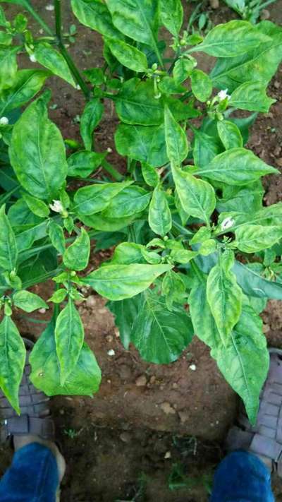 ಹೆಲೋ Asif Pasha. ತಮ್ಮ ಮೆಣಸಿನಕಾಯಿ ಬೆಳೆಗೆ Thrips ಕೀಟ ಮತ್ತು Magnesium Deficiency ಕೊರತೆ ಕಂಡುಬಂದಿದೆ ಅನಿಸುತ್ತಿದೆ. ಇದರ ಹತೋಟಿ ಕ್ರಮಗಳಿಗಾಗಿ ಮೇಲೆ ತೋರಿಸಿದ ಹಸಿರು ಬಣ್ಣದ ಲಿಂಕ್ ಮೇಲೆ ಬೆರಳು ಒತ್ತಿ ಮಾಹಿತಿ ಪಡೆಯಿರಿ.