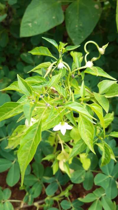ಹೆಲೋ Aparai Chougala. ಇದು ಸೇಂಗಾ ಬೆಳೆಯಲ್ಲಿ, ಮೆಣಸಿನಕಾಯಿ ಅಂತರ ಬೆಳೆ ಇರುವಂತೆ ತೋರುತ್ತಿದೆ. ಈ ಮೆಣಸಿನಕಾಯಿ ಬೆಳೆಗೆ Nitrogen Deficiency ಕೊರತೆ ಕಂಡು ಬಂದಿದೆ. ಇದರ ಹತೋಟಿ ಕ್ರಮಗಳಿಗಾಗಿ ಇಲ್ಲಿ ತೋರಿಸಿದ ಹಸಿರು ಬಣ್ಣದ ಅಕ್ಷರಗಳ ಲಿಂಕ ಮೇಲೆ ಬೆರಳು ಒತ್ತಿ ಪ್ಲ್ಯಾನಟಿಕ್ಸ ಗ್ರಂಥಾಲಯವನ್ನು ಸಮ್ಪರ್ಕಿಸಿ ಗುಣಲಕ್ಷಣಗಳನ್ನು ತಿಳಿದುಕೊಂಡು ಹತೋಟಿ ಕ್ರಮಗಳು ಅನುಸರಿಸಿರಿ.