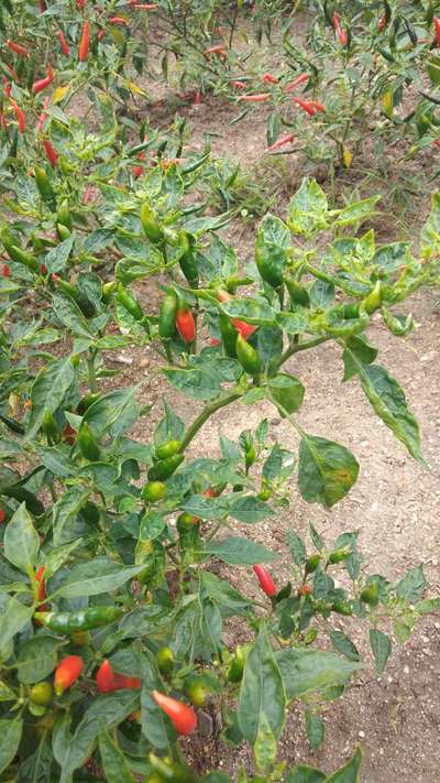ಹೆಲೋ Beerappa B. ತಾವು ಕಳಿಸಿದ ಚಿತ್ರದ ಪ್ರಕಾರವಾಗಿ, ತಮ್ಮ ಮೆಣಸಿನಕಾಯಿ ಬೆಳೆ ಚೆನ್ನಾಗಿ ಮತ್ತು ಆರೋಗ್ಯವಾಗಿ ಇದೆ ಅನಿಸುತ್ತಿದೆ. ಆದಾಗ್ಯೂ Chilli Thrips ಕೀಟದ ಭಾಧೆ ಪ್ರಾರಭದ ಹಂತದಲ್ಲಿ ಇದೆ ಅನಿಸುತ್ತಿದೆ. ಆದುದರಿಂದ, ತಾವು ಇಲ್ಲಿ ತೋರಿಸಿದ ಹಸಿರು ಬಣ್ಣದ ಅಕ್ಷರಗಳ ಲಿಂಕ ಮೇಲೆ ಬೆರಳು ಒತ್ತಿ ಪ್ಲ್ಯಾನಟಿಕ್ಸ ಗ್ರಂಥಾಲಯವನ್ನು ಸಮ್ಪರ್ಕಿಸಿ ಹತೋಟಿ ಕ್ರಮಗಳು ಅನುಸರಿಸಿರಿ. ಇದಲ್ಲದೆ ಏನಾದರು ತೊಂದರೆ ಇದ್ದರೆ, ಇನ್ನಷ್ಟು ಕ್ಲಿಯರ್ ಇರುವ ಹತ್ತಿರದ ಚಿತ್ರಗಳು ಕಳುಹಿಸಿ ಮಾಹಿತಿ ಪಡೆಯಿರಿ. ಇದಲ್ಲದೆ, ತಾವು ಪ್ಲ್ಯಾನಟಿಕ್ಸ ನ ಹೊಂ ಪೇಜನಲ್ಲಿ ತಮ್ಮ ಅನುಕೂಲಕ್ಕೆ ಕೊಟ್ಟಿರುವ "ರಸಗೋಬ್ಬರ ಕ್ಯಾಲ್ಕುಲೇಟರ","ಬೆಳೆ ಸಲಹೆ" "ಸಸ್ಯಕ ಹಂತ" ದ "ಎಲ್ಲಾ ಕಾರ್ಯಗಳು ನೋಡಿ",ಮತ್ತು "ಹವಾಮಾನ ವರದಿ" ಎನ್ನುವ ವಿಭಾಗಗಳನ್ನು ಉಪಯೋಗಿಸಿಕೊಂಡು ಸಮಯಕ್ಕೆ ಸರಿಯಾದ ಕ್ರಮಗಳು ಅನುಸರಿಸಿರಿ. ಇವು ನಿಮಗೆ ಬೆಳೆಯ ಉತ್ಪಾದನೆಯನ್ನು ಹೇಗೆ ಉತ್ತಮಗೊಳಿಸಬಹುದು ಎಂಬುದರ ಕುರಿತು ಮಾಹಿತಿ ಒದಗಿಸುತ್ತವೆ.
