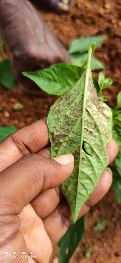 ಹೆಲೋ Nagaraja K. ಈ ಚಿತ್ರದ ಪ್ರಕಾರವಾಗಿ, ತಮ್ಮ ಮೆಣಸಿನಕಾಯಿ ಬೆಳೆಗೆ ತೀವ್ರಗತಿಯಲ್ಲಿ Leaf Miner Flies ಕೀಟದ ಭಾಧೆ ತಗುಲಿದೆ ಅನಿಸುತ್ತಿದೆ. ಆದರೆ ಖಾತ್ರಿ ಇಲ್ಲ. ಆದುದರಿಂದ ತಾವು ಇಲ್ಲಿ ತೋರಿಸಿದ ಹಸಿರು ಬಣ್ಣದ ಅಕ್ಷರಗಳ ಲಿಂಕ್ ಮೇಲೆ ಬೆರಳು ಒತ್ತಿ ಹತೋಟಿ ಕ್ರಮಗಳು ಅನುಸರಿಸಿರಿ. ಬೇರೆ ಏನಾದರು ತೊಂದರೆ ಇದ್ದರೆ ಇನ್ನೊಮ್ಮೆ, ಇನ್ನಷ್ಟು ಕ್ಲಿಯರ್ ಇರುವ ಹತ್ತಿರದ ಹಗಲು ಹೊತ್ತಿನ ಸಮಯದಲ್ಲಿ ತೆಗೆದ ತೋಟದಲ್ಲಿನ ನೇರವಾದ ಚಿತ್ರಗಳ ಜೊತೆ ಸಮಂಜಸ ಪ್ರಶ್ನೆಗಳು ಕಳುಹಿಸಿ ಮಾಹಿತಿ ಪಡೆಯಿರಿ.