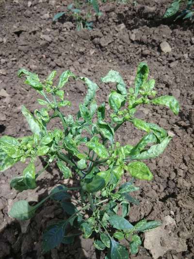 ಹೆಲೋ ಪರಸಪ್ಪ. ಈ ಚಿತ್ರದ ಪ್ರಕಾರವಾಗಿ, ತಮ್ಮ ಮೆಣಸಿನಕಾಯಿ ಬೆಳೆಗೆ ತೀವ್ರಗತಿಯಲ್ಲಿ Chilli Thrips ಮತ್ತು Tobacco Streak Virus ರೋಗದ ಭಾಧೆ ತಗುಲಿದೆ ಅನಿಸುತ್ತಿದೆ. ಇಲ್ಲಿ ತೋರಿಸಿದ ಹಸಿರು ಬಣ್ಣದ ಅಕ್ಷರಗಳ ಲಿಂಕಗಳ ಮೇಲೆ ಬೆರಳು ಒತ್ತಿ ಹತೋಟಿ ಕ್ರಮಗಳು ಅನುಸರಿಸಿರಿ. ಬೇರೆ ಏನಾದರು ತೊಂದರೆ ಇದ್ದರೆ ಇನ್ನೊಮ್ಮೆ, ಇನ್ನಷ್ಟು ಚಿತ್ರಗಳೊಂದಿಗೆ ಸಮಂಜಸ ಪ್ರಶ್ನೆಗಳು ಕಳುಹಿಸಿ ಮಾಹಿತಿ ಪಡೆಯಿರಿ.