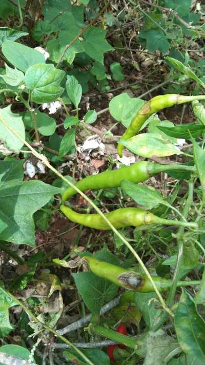 ಹೆಲೋ Sachin D M. ಈ ಚಿತ್ರದ ಪ್ರಕಾರವಾಗಿ, ತಮ್ಮ ಮೆಣಸಿನಕಾಯಿ ಬೆಳೆಗೆ ತೀವ್ರಗತಿಯಲ್ಲಿ Anthracnose of Pepper ರೋಗ ತಲುಲಿದೆ ಅನಿಸುತ್ತಿದೆ. ಇಲ್ಲಿ ತೋರಿಸಿದ ಹಸಿರು ಬಣ್ಣದ ಅಕ್ಷರಗಳ ಲಿಂಕ್ ಮೇಲೆ ಬೆರಳು ಒತ್ತಿ ಹತೋಟಿ ಕ್ರಮಗಳು ಅನುಸರಿಸಿರಿ. ಜೊತೆಗೆ, ತಮಗೆ ಗೋತ್ತಿರುವಂತೆ, ಬೆಳೆಯ ಒಳ್ಳೆಯ ಬೆಳವಣಿಗೆ ಮತ್ತು ಇಳುವರಿ ಪಡೆಯಲು ಸಾಕಷ್ಟು ಪ್ರಮಾಣದಲ್ಲಿ ಕೊಟ್ಟಿಗೆ ಗೊಬ್ಬರ ಮತ್ತು ತಮ್ಮ ಭಾಗದ ಮೆಣಸಿನಕಾಯಿ ಬೆಳೆಗೆ ಶಿಫಾರಸಿನ ಪ್ರಮಾಣದಲ್ಲಿ ರಾಸಾಯನಿಕ ಗೊಬ್ಬರಗಳು ಕೊಡಬೇಕು ಅಥವಾ ಇಲ್ಲಿ ಪ್ಲ್ಯಾಟಿಕ್ಸ ನ ಹೊಂ ಪೇಜನಲ್ಲಿ ಕೊಟ್ಟಿರುವ ರಸಗೊಬ್ಬರಗಳ ಕ್ಯಾಲ್ಕುಲೇಟರ ಬಳಸಿಕೊಂಡು ರಾಸಾಯನಿಕ ಗೊಬ್ಬರಗಳು ಕೊಡಬಹುದು.