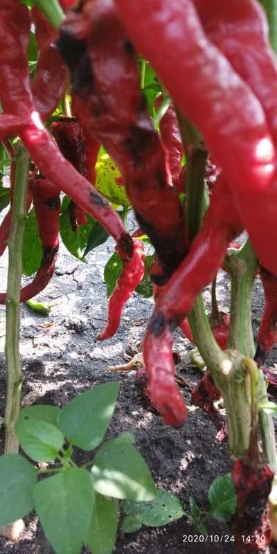 ಹೆಲೋ Shivu. ಈ ಚಿತ್ರದ ಪ್ರಕಾರವಾಗಿ, ತಮ್ಮ ಮೆಣಸಿನಕಾಯಿ ಬೆಳೆಗೆ ತೀವ್ರಗತಿಯಲ್ಲಿ Anthracnose of Pepper ಮತ್ತು Bacterial Soft Rot of Pepper ರೋಗ ತಲುಲಿದೆ ಅನಿಸುತ್ತಿದೆ. ಇಲ್ಲಿ ತೋರಿಸಿದ ಹಸಿರು ಬಣ್ಣದ ಅಕ್ಷರಗಳ ಲಿಂಕಗಳ ಮೇಲೆ ಬೆರಳು ಒತ್ತಿ ಪ್ಲ್ಯಾಟಿಕ್ಸ ಗ್ರಂಥಾಲಯವನ್ನು ಸಮ್ಪರ್ಕಿಸಿ, ಗುಣಲಕ್ಷಣಗಳನ್ನು ಸರಿಯಾಗಿ ತಿಳಿದುಕೊಂಡು ಅಲ್ಲಿ ತೋರಿಸಿದ ಸರಿಯಾದ ಮುಂಜಾಗರೂಕತೆಯ ಕ್ರಮಗಳು ಅನುಸರಿಸಿರಿ.