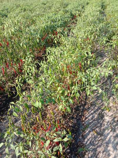 ಹೆಲೋ Meghana. ಈ ಚಿತ್ರದ ಪ್ರಕಾರವಾಗಿ, ತಮ್ಮ ಮೆಣಸಿನಕಾಯಿ ಬೆಳೆಗೆ ತೀವ್ರಗತಿಯಲ್ಲಿ Fusarium Wilt ರೋಗ ತಲುಲಿದೆ ಅನಿಸುತ್ತಿದೆ. ಇಲ್ಲಿ ತೋರಿಸಿದ ಹಸಿರು ಬಣ್ಣದ ಅಕ್ಷರಗಳ ಲಿಂಕ್ ಮೇಲೆ ಬೆರಳು ಒತ್ತಿ ಹತೋಟಿ ಕ್ರಮಗಳು ಅನುಸರಿಸಿರಿ. ಬೇರೆ ಏನಾದರು ತೊಂದರೆ ಇದ್ದರೆ ಇನ್ನೊಮ್ಮೆ ಇನ್ನಷ್ಟು ಕ್ಲಿಯರ್ ಇರುವ ಹತ್ತಿರದ ಚಿತ್ರಗಳೋಂದಿಗೆ ಸಮಂಜಸ ಪ್ರಶ್ನೆಗಳು ಕಳುಹಿಸಿ ಮಾಹಿತಿ ಪಡೆಯಿರಿ.