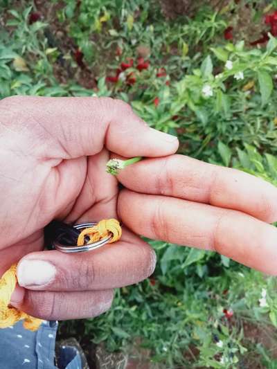 ಹೆಲೋ Veeresh. ಈ ಚಿತ್ರದ ಪ್ರಕಾರವಾಗಿ ಮತ್ತು ತಮ್ಮ ಅನಿಸಿಕೆಯಂತೆ ಇದು Helicoverpa Caterpillar, Chilli Thrips ಕೀಟ ಮತ್ತು Powdery Mildew of Pepper ರೋಗ ತಲುಲಿದೆ ಅನಿಸುತ್ತಿದೆ. ಇಲ್ಲಿ ತೋರಿಸಿದ ಹಸಿರು ಬಣ್ಣದ ಅಕ್ಷರಗಳ ಲಿಂಕ್ ಮೇಲೆ ಬೆರಳು ಒತ್ತಿ ಹತೋಟಿ ಕ್ರಮಗಳು ಅನುಸರಿಸಿರಿ. ಬೇರೆ ಏನಾದರು ತೊಂದರೆ ಇದ್ದರೆ ಇನ್ನೊಮ್ಮೆ ಇನ್ನಷ್ಟು ಚಿತ್ರಗಳೊಂದಿಗೆ ಸಮಂಜಸ ಪ್ರಶ್ನೆಗಳು ಕಳುಹಿಸಿ ಮಾಹಿತಿ ಪಡೆಯಿರಿ.