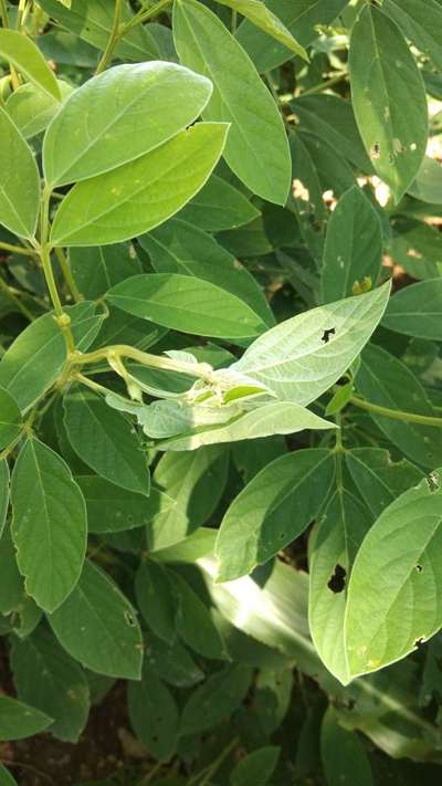ತೊಗರಿಯಲ್ಲಿ ಎಳೆಗಳ ಮೇಲೆ ಬಿಳಿ ಬಣ್ಣದ ಚುಕ್ಕಿಗಳು ಹಾಗೂ ಎಲೆಯಲ್ಲಿ ರಂಧ್ರ