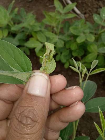 ತೊಗರಿ ಬೆಳೆಯ ಎಲೆಗಳು ಮಡಿಚಿಕೊಂಡಿವೇ ಮತ್ತು ಅದರೊಳಗೆ ಸಣ್ಣ ಸಣ್ಣಹುಳುಗಳು ಆಗ್ತಾ ಇವೆ ಇದಕ್ಕೆ ಪರಿಹಾರ ತಿಳಿಸಿ. (ಬಿತ್ತನೆ ಮಾಡಿ 45 ದಿನಗಳಾಗಿದೆ)