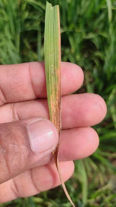 ಹೆಲೋ Anjan Bs. ಇದು Nitrogen Deficiency ಕೊರತೆ ಮತ್ತು Brown Spot of Rice ರೋಗ ತಲುಲಿದೆ ಅನಿಸುತ್ತಿದೆ. ಇಲ್ಲಿ ತೋರಿಸಿದ ಹಸಿರು ಬಣ್ಣದ ಅಕ್ಷರಗಳ ಲಿಂಕಗಳ ಮೇಲೆ ಬೆರಳು ಒತ್ತಿ ಹತೋಟಿ ಕ್ರಮಗಳು ಅನುಸರಿಸಿರಿ.