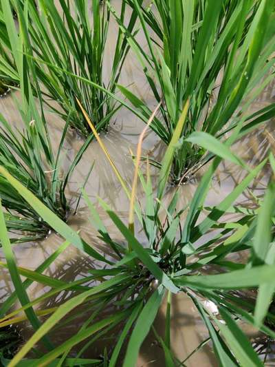 ನಾಟಿ ಮಾಡಿ 40 ದಿನ ಗಳಾಗಿದೆ. ಈ ರೀತಿಯ ಕೆಂಪು ಬಣ್ಣದ ಗರಿಗಳು ಅಲ್ಲಲ್ಲಿ ಕಾಣುತ್ತಿದೆ ಇದಕ್ಕೆ ಕಾರಣ ಏನು.. ಪರಿಹಾರ ತಿಳಿಸಿ.