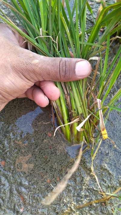 ಭತ್ತದ ಬುಡದಲ್ಲಿ ಕೆಳಗಿನ ಎಲೆ ವಣಗಿದಂತೆ ಆಗಿ ಕ್ರಮೀಣ ಕೋಳೆಯತ್ತದೆ..