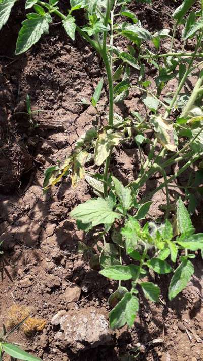 ಎಲೆಗಳು ಮುದುರುತಿವೆ ಹಳದಿ ಬಣ್ಣದ ಬಂದಿದೆ ಬಿಳಿ ನೋಣಗಳು ಇವೆ