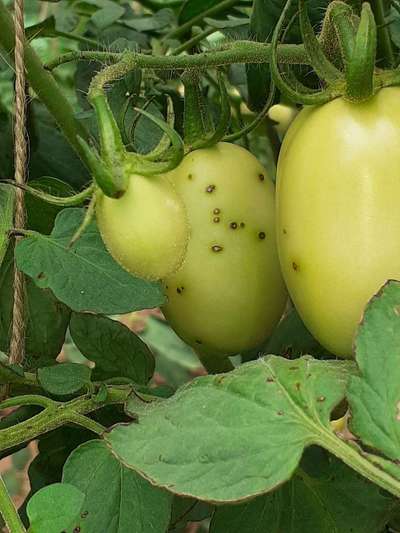 ಟಮೊಟ ಕಾಯಿ ಯ ಮೇಲಿನ ಕಪ್ಪು ಚುಕ್ಕೆಗಳನ್ನು ಹೋಗಲಾಡಿಸಲು ಸಮುದಾಯ ಯಾವ ಔಷಧವನ್ನು ಶಿಪಾರಸ್ಸು ಮಾಡ್ತೀರ?