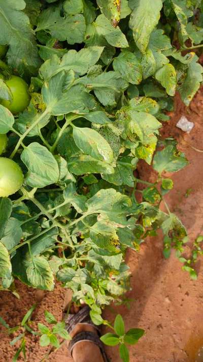 ಹೆಲೋ Srinatha R K. ಈ ಚಿತ್ರದ ಪ್ರಕಾರವಾಗಿ ಮತ್ತು ತಮ್ಮ ಅನಿಸಿಕೆಯಂತೆ, ತಮ್ಮ ಟೊಮ್ಯಾಟೊ ಬೆಳೆಗೆ Septoria Leaf Spot ರೋಗ ತಗುಲಿದೆ ಅನಿಸುತ್ತಿದೆ. ಇದರ ಹತೋಟಿ ಕ್ರಮಗಳಿಗಾಗಿ ಇಲ್ಲಿ ತೋರಿಸಿದ ಹಸಿರು ಬಣ್ಣದ ಅಕ್ಷರಗಳ ಲಿಂಕ್ಗಳ ಮೇಲೆ ಬೆರಳು ಒತ್ತಿ ಪ್ಲ್ಯಾನಟಿಕ್ಸ ಗ್ರಂಥಾಲಯವನ್ನು ಸಮ್ಪರ್ಕಿಸಿ ಗುಣಲಕ್ಷಣಗಳನ್ನು ತಿಳಿದುಕೊಂಡು ಹತೋಟಿ ಕ್ರಮಗಳು ಅನುಸರಿಸಿರಿ. ಇದಲ್ಲದೆ, ತಾವು ಪ್ಲ್ಯಾನಟಿಕ್ಸ ನ ಹೊಂ ಪೇಜನಲ್ಲಿ ತಮ್ಮ ಅನುಕೂಲಕ್ಕೆ ಕೊಟ್ಟಿರುವ "ರಸಗೋಬ್ಬರ ಕ್ಯಾಲ್ಕುಲೇಟರ","ಬೆಳೆ ಸಲಹೆ" "ಸಸ್ಯಕ ಹಂತ" ದ "ಎಲ್ಲಾ ಕಾರ್ಯಗಳು ನೋಡಿ",ಮತ್ತು "ಹವಾಮಾನ ವರದಿ" ಎನ್ನುವ ವಿಭಾಗಗಳನ್ನು ಉಪಯೋಗಿಸಿಕೊಂಡು ಸಮಯಕ್ಕೆ ಸರಿಯಾದ ಕ್ರಮಗಳು ಅನುಸರಿಸಿರಿ. ಇವು ನಿಮಗೆ ಬೆಳೆಯ ಉತ್ಪಾದನೆಯನ್ನು ಹೇಗೆ ಉತ್ತಮಗೊಳಿಸಬಹುದು ಎಂಬುದರ ಕುರಿತು ಮಾಹಿತಿ ಒದಗಿಸುತ್ತವೆ.
