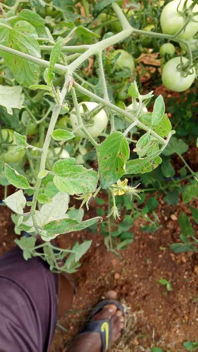 ಹೆಲೋ Dhananjaya. ಇದು Early Blight. ಇಲ್ಲಿ ತೋರಿಸಿದ ಹಸಿರು ಬಣ್ಣದ ಅಕ್ಷರಗಳ ಲಿಂಕ ಮೇಲೆ ಬೆರಳು ಒತ್ತಿ ಹತೋಟಿ ಕ್ರಮಗಳು ಅನುಸರಿಸಿರಿ.