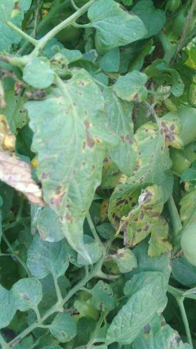 ಹೆಲೋ ದರೆಪ್ಪ. ಇದು Tomato Late Blight ಮತ್ತು Early Blight ರೋಗದ ಭಾಧೆ ತಗುಲಿದೆ ಅನಿಸುತ್ತಿದೆ. ಇಲ್ಲಿ ತೋರಿಸಿದ ಹಸಿರು ಬಣ್ಣದ ಅಕ್ಷರಗಳ ಲಿಂಕ್ಗಳ ಮೇಲೆ ಬೆರಳು ಒತ್ತಿ ಹತೋಟಿ ಕ್ರಮಗಳು ಅನುಸರಿಸಿರಿ.