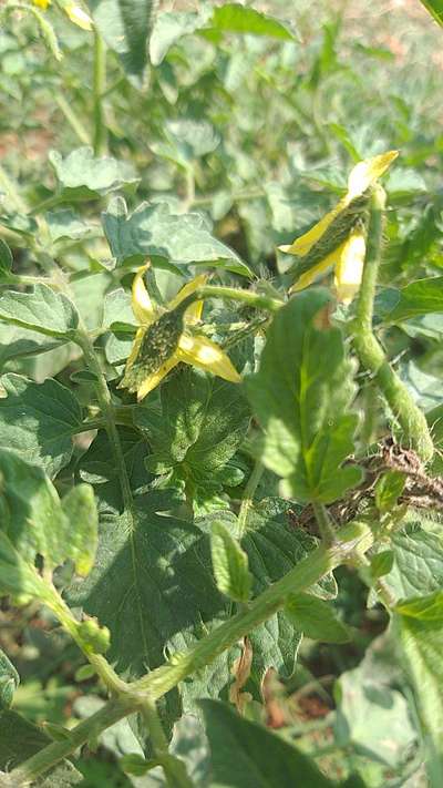 ಹೆಲೋ Raju. ತಾವು ಕಳಿಸಿದ ಚಿತ್ರ ಅಷ್ಟೊಂದು ಸರಿಯಾಗಿಲ್ಲ. ಆದಾಗ್ಯೂ ಈ ಚಿತ್ರ ಜ್ಹೂಮ್ ಮಾಡಿ ನೋಡಲಾಗಿ, ಇದು Leaf Miner Flies, Spider Mites ಮತ್ತು Aphids ಕೀಟಗಳ ಭಾಧೆ ತಗುಲಿದೆ ಅನಿಸುತ್ತಿದೆ. ಇಲ್ಲಿ ತೋರಿಸಿದ ಹಸಿರು ಬಣ್ಣದ ಅಕ್ಷರಗಳ ಲಿಂಕ್ಗಳ ಮೇಲೆ ಬೆರಳು ಒತ್ತಿ ಹತೋಟಿ ಕ್ರಮಗಳು ಅನುಸರಿಸಿರಿ.