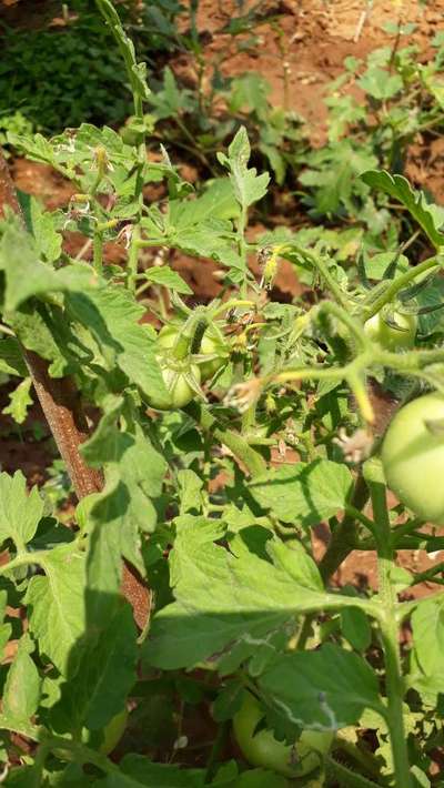 ಹೆಲೋ Revanna. ಈ ಚಿತ್ರದ ಪ್ರಕಾರವಾಗಿ, ತಮ್ಮ ಟೊಮ್ಯಾಟೊ ಬೆಳೆಗೆ Botrytis Blight ಮತ್ತು Leaf Miner Flies ಕೀಟದ ಭಾಧೆ ತಗುಲಿದೆ ಅನಿಸುತ್ತಿದೆ. ಆದರೆ ಖಾತ್ರಿ ಇಲ್ಲ. ಆದುದರಿಂದ ತಾವು ಇಲ್ಲಿ ತೋರಿಸಿದ ಹಸಿರು ಬಣ್ಣದ ಅಕ್ಷರಗಳ ಲಿಂಕಗಳ ಮೇಲೆ ಬೆರಳು ಒತ್ತಿ ಹತೋಟಿ ಕ್ರಮಗಳು ಅನುಸರಿಸಿರಿ. ಬೇರೆ ಏನಾದರು ತೊಂದರೆ ಇದ್ದರೆ ಇನ್ನಷ್ಟು ಕ್ಲಿಯರ್ ಇರುವ ಹತ್ತಿರದ ಚಿತ್ರಗಳ ಜೊತೆ ಸಮಂಜಸ ಪ್ರಶ್ನೆಗಳು ಕಳುಹಿಸಿ ಮಾಹಿತಿ ಪಡೆಯಿರಿ.