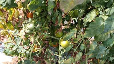 ಹೆಲೋ ಸುಕುಮಾರ ರಾಜ. ಈ ಚಿತ್ರದ ಪ್ರಕಾರವಾಗಿ, ತಮ್ಮ ಟೊಮ್ಯಾಟೊ ಬೆಳೆಗೆ ತೀವ್ರಗತಿಯಲ್ಲಿ Tomato Late Blight ರೋಗ ಇರಬಹುದು ಅನಿಸುತ್ತಿದೆ. ಇಲ್ಲಿ ತೋರಿಸಿದ ಹಸಿರು ಬಣ್ಣದ ಅಕ್ಷರಗಳ ಲಿಂಕ್ ಮೇಲೆ ಬೆರಳು ಒತ್ತಿ ಪ್ಲ್ಯಾಟಿಕ್ಸ ಗ್ರಂಥಾಲಯವನ್ನು ಸಮ್ಪರ್ಕಿಸಿ ಗುಣಲಕ್ಷಣಗಳನ್ನು ಸರಿಯಾಗಿ ತಿಳಿದುಕೊಂಡು ಹತೋಟಿ ಕ್ರಮಗಳು ಅನುಸರಿಸಿರಿ. ಬೇರೆ ಏನಾದರು ತೊಂದರೆ ಇದ್ದರೆ ಇನ್ನೊಮ್ಮೆ, ಇನ್ನಷ್ಟು ಕ್ಲಿಯರ್ ಇರುವ ಹತ್ತಿರದ ಹಗಲು ಹೊತ್ತಿನ ಸಮಯದಲ್ಲಿ ತೆಗೆದ ತೋಟದಲ್ಲಿನ ನೇರವಾದ ಚಿತ್ರಗಳ ಜೊತೆ ಸಮಂಜಸ ಪ್ರಶ್ನೆಗಳು ಕಳುಹಿಸಿ ಮಾಹಿತಿ ಪಡೆಯಿರಿ.