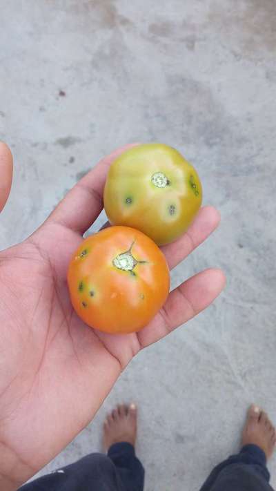 ಹೆಲೋ ಸುಕುಮಾರ ರಾಜ. ಈ ಚಿತ್ರದ ಪ್ರಕಾರವಾಗಿ, ತಮ್ಮ ಟೊಮ್ಯಾಟೊ ಬೆಳೆಗೆ ತೀವ್ರಗತಿಯಲ್ಲಿ Bacterial Spot and Speck of Tomato ರೋಗ ತಲುಲಿದೆ ಅನಿಸುತ್ತಿದೆ. ಇಲ್ಲಿ ತೋರಿಸಿದ ಹಸಿರು ಬಣ್ಣದ ಅಕ್ಷರಗಳ ಲಿಂಕ್ ಮೇಲೆ ಬೆರಳು ಒತ್ತಿ ಹತೋಟಿ ಕ್ರಮಗಳು ಅನುಸರಿಸಿರಿ.
