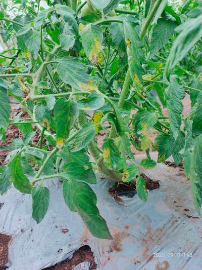ಹೆಲೋ Manjunath Sonavale. ಈ ಚಿತ್ರದ ಪ್ರಕಾರವಾಗಿ, ತಮ್ಮ ಟೊಮೆಟೊ ಬೆಳೆಗೆ Bacterial Spot and Speck of Tomato ಮತ್ತು Tomato Late Blight ರೋಗ ತಲುಲಿದೆ ಅನಿಸುತ್ತಿದೆ. ಆದರೆ ಖಾತ್ರಿ ಇಲ್ಲ. ಆದುದರಿಂದ ತಾವು ಇಲ್ಲಿ ತೋರಿಸಿದ ಹಸಿರು ಬಣ್ಣದ ಅಕ್ಷರಗಳ ಲಿಂಕಗಳ ಮೇಲೆ ಬೆರಳು ಒತ್ತಿ ಪ್ಲ್ಯಾಟಿಕ್ಸ ಗ್ರಂಥಾಲಯವನ್ನು ಸಮ್ಪರ್ಕಿಸಿ ಗುಣಲಕ್ಷಣಗಳನ್ನು ಸರಿಯಾಗಿ ತಿಳಿದುಕೊಂಡು ಹತೋಟಿ ಕ್ರಮಗಳು ಅನುಸರಿಸಿರಿ.