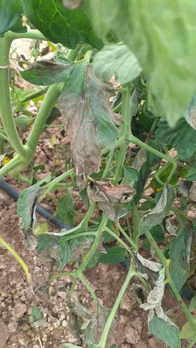 ಹೆಲೋ Hanumantharaju. ಈ ಚಿತ್ರದ ಪ್ರಕಾರವಾಗಿ ಮತ್ತು ತಮ್ಮ ಅನಿಸಿಕೆಯಂತೆ, ಇದು Tomato Late Blight ಮತ್ತು Fusarium Wilt ರೋಗ ಇರಬಹುದು ಸರಿಯಾಗಿ ಪರೀಕ್ಷಿಸಿ ನೋಡಿರಿ. ಇಲ್ಲಿ ತೋರಿಸಿದ ಹಸಿರು ಬಣ್ಣದ ಅಕ್ಷರಗಳ ಲಿಂಕಗಳ ಮೇಲೆ ಬೆರಳು ಒತ್ತಿ, ಪ್ಲ್ಯಾಟಿಕ್ಸ ಗ್ರಂಥಾಲಯವನ್ನು ಸಮ್ಪರ್ಕಿಸಿ, ಗುಣಲಕ್ಷಣಗಳನ್ನು ಸರಿಯಾಗಿ ತಿಳಿದುಕೊಂಡು, ಅಲ್ಲಿ ತೋರಿಸಿದ ಸರಿಯಾದ ಮುಂಜಾಗರೂಕತೆಯ ಕ್ರಮಗಳು ಮತ್ತು ಚಿಕಿತ್ಸಾ ಕ್ರಮಗಳು ತಕ್ಷಣ ಅನುಸರಿಸಿರಿ.