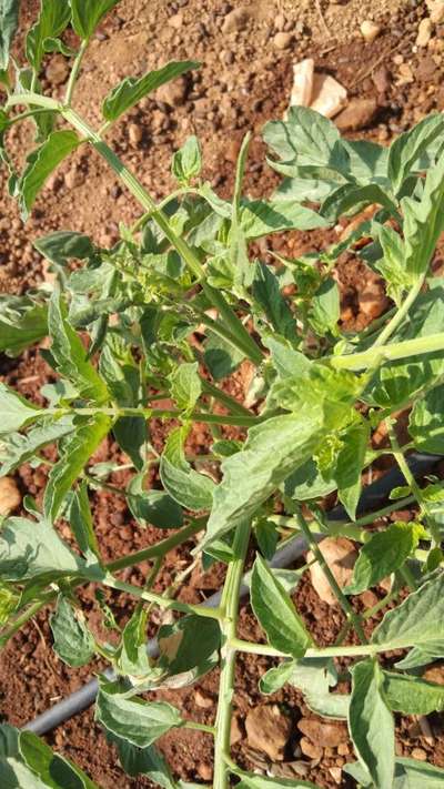 ಹೆಲೋ ಮಂಜುನಾಥ ಟಿ. ಈ ಚಿತ್ರದ ಪ್ರಕಾರವಾಗಿ, ತಮ್ಮ ಟೊಮೆಟೊ ಬೆಳೆಗೆ ಅಂಥಾ ದೊಡ್ಡ ತೊಂದರೆ ಏನೂ ಕಾಣಿಸುತ್ತಿಲ್ಲ. ಆದಾಗ್ಯೂ ಈ ಚಿತ್ರದ ಪ್ರಕಾರವಾಗಿ, ತಮ್ಮ ಟೊಮೆಟೊ ಬೆಳೆಗೆ ಪ್ರಾರಂಭ ಹಂತದ Leaf Miner Flies ಕೀಟ ಮತ್ತು Thrips ಕೀಟದ ಭಾಧೆ ತಗುಲಿದೆ ಅನಿಸುತ್ತಿದೆ. ಇಲ್ಲಿ ತೋರಿಸಿದ ಹಸಿರು ಬಣ್ಣದ ಅಕ್ಷರಗಳ ಲಿಂಕಗಳ ಮೇಲೆ ಬೆರಳು ಒತ್ತಿ ಹತೋಟಿ ಕ್ರಮಗಳು ಅನುಸರಿಸಿರಿ. ಜೊತೆಗೆ ತಮಗೆ ಗೋತ್ತಿರುವಂತೆ, ತಮ್ಮ ಟೊಮೆಟೊ ಬೆಳೆಯ ಒಳ್ಳೆಯ ಬೆಳವಣಿಗೆ ಮತ್ತು ಇಳುವರಿ ಪಡೆಯಲು, ಸಾಕಷ್ಟು ಪ್ರಮಾಣದಲ್ಲಿ ಚನ್ನಾಗಿ ಕೊಳೆತ ಕೊಟ್ಟಿಗೆ ಗೊಬ್ಬರ ಅಥವಾ ಎರೆ ಹುಳು ಗೊಬ್ಬರದ ಜೊತೆಗೆ ತಮ್ಮ ಭಾಗದ ಟೊಮೆಟೊ ಬೆಳೆಗೆ ಶಿಫಾರಸಿನ ಪ್ರಮಾಣದಲ್ಲಿ ರಾಸಾಯನಿಕ ಗೊಬ್ಬರಗಳು ಕೊಡಬೇಕು ಅಥವಾ ಇಲ್ಲಿ ಪ್ಲ್ಯಾಟಿಕ್ಸ ನ ಹೊಂ ಪೇಜನಲ್ಲಿ ಕೊಟ್ಟಿರುವ ರಸಗೊಬ್ಬರಗಳ ಕ್ಯಾಲ್ಕುಲೇಟರ ಬಳಸಿಕೊಂಡು ರಾಸಾಯನಿಕ ಗೊಬ್ಬರಗಳು ಕೊಡಬಹುದು. ಇದಲ್ಲದೆ, ತಾವು ಪ್ಲಾಂಟಿಕ್ಸ್ ನ ಹೊಂ ಪೇಜನಲ್ಲಿ ತಮ್ಮ ಅನುಕೂಲಕ್ಕೆ ಕೊಟ್ಟಿರುವ ಟೊಮೆಟೋ ಬೆಳೆಯ "ಕೃಷಿ ಸಲಹೆಯನ್ನು" ಉಪಯೋಗಿಸಿಕೊಳ್ಳಿರಿ ಅಥವಾ ರಚಿಸಿಕೊಳ್ಳಿರಿ. ಇದು ನಿಮ್ಮಬೆಳೆಯ ಉತ್ಪಾದನೆಯನ್ನು ಹೇಗೆ ಉತ್ತಮಗೊಳಿಸಬಹುದು ಎಂಬುದರ ಕುರಿತು ಮಾಹಿತಿಯನ್ನು ಒದಗಿಸುತ್ತದೆ.