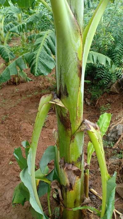 അടിഭാഗത്തെ ഇലകളുടെ അരിക്കാണ് ആദ്യം കരിഞ്ഞു തുടങ്ങുന്നത് അങ്ങിനെ മേൽഭാഗത്തെ ഇലകളിലേക്ക് കരിച്ചിൽ പടരുന്നു 16 ഇലകളുണ്ട് വാഴയിൽ 10 ദിവസം കഴിഞ്ഞാൽ 5 മാസം പൂർത്തിയാകൂ o