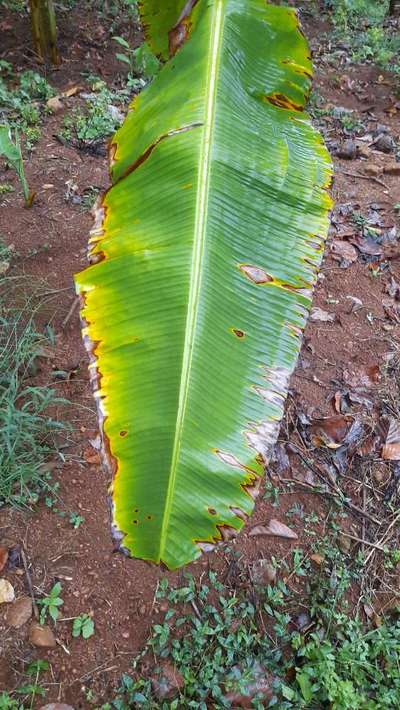 വാഴ തൈ യുടെ ഇലകൾക്ക് വെള്ള നിറം കാണപ്പെടുന്നു വെള്ള നിറം കാണുന്ന ഇലയുടെ അടിഭാഗം ഉണങ്ങുന്ന തായി കാണുന്നു