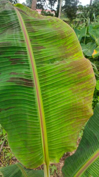 2 മാസം പ്രായമായ നേന്ത്രവാഴയുടെ ഇലകളിൽ ഇങ്ങനെ കാണുന്നു... മിക്ക വാഴയുടെയും കൂമ്പ് പിരിഞ്ഞു മുറിഞ്ഞ നിലയിലും ഇലകൾ ചുരുണ്ടുവരുന്നതായും കാണുന്നു... 2 വള പ്രയോഗങ്ങൾ നടത്തിയിട്ടുണ്ട്.. 1 ആം വളം 8:8:16 ഉം രണ്ടാം വളം 18:9:18 മാണ് നൽകിയത്..