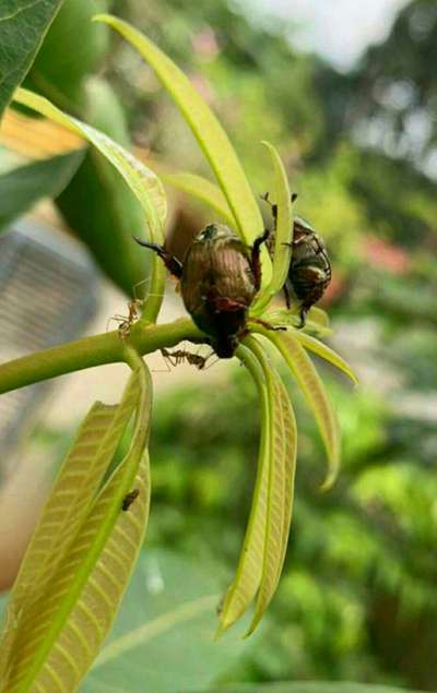 ഇതു് ഒരിനം വണ്ടാണ് ഇതിന്റെ ഭക്ഷണം തളിർ ഇലകളും പൂക്കളുടെ ദളങ്ങളുമാണ് ജൈവരീതിയിൽ പരിഹാരം ഇല്ല എക്കാലക് സ് 5 ലിറ്ററിന് 10 മില്ലി എന്ന കണക്കിന് പൂക്കളിൽ സ്പ്രേ ചെയ്യുക വണ്ടുകൾ നശിക്കും തളിർ ഇലകൾ വെണ്ടയുടെ ഇല പാവൽ പയർ പടവലം ഇവക്ക് എല്ലാം ഫലപ്രദം