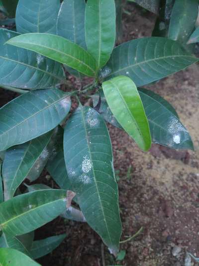 ഇലകളിൽ അവിടിവിടങ്ങളിലയി വെള്ള പൊടിപോലുള്ള കൂട്ടം പറ്റി പിടിച്ചിരിക്കുന്നു..