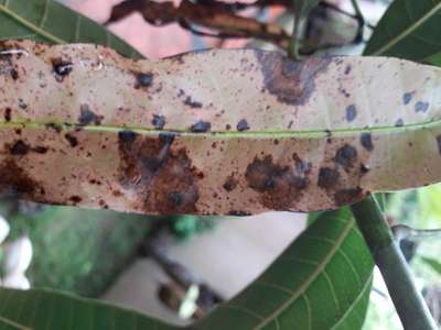 മാവിൻ്റെ തളിരിലയിൽ പാടുകൾ വന്ന° കരിയുന്നു