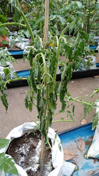തക്കാളി ഗ്രോ ബാഗിലാണ് നട്ടിരിക്കുന്നത് ഏകദേശം കായ്ക്കാറായി ഇപ്പോൾ അതിന് വാട്ടം സംമ്പവിച്ചിരിക്കുന്നു