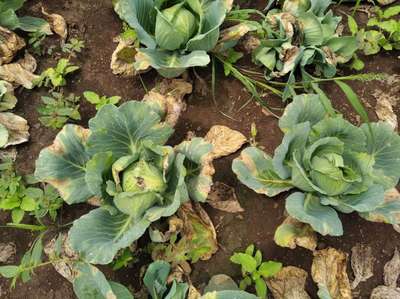 कोबिवर गड्ड्यावर जांभळे स्पॉट पडताहेत औषधे सुचवा..आणि सडवा पण दिसतोय..