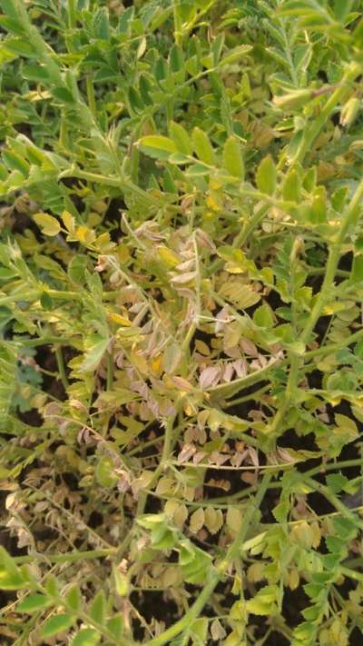 बाकीच्या हरबऱ्याच्या तुलनेत हे फुल पण नाही धरत आहे आणि त्यातील शेंडे पिवळसर आणि वाळलेले आहेत
