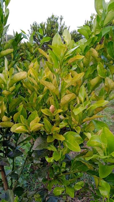 तीन वर्षाचे संत्रा झाड पाने पिवळी होत आहेत, निस्तेज आहे