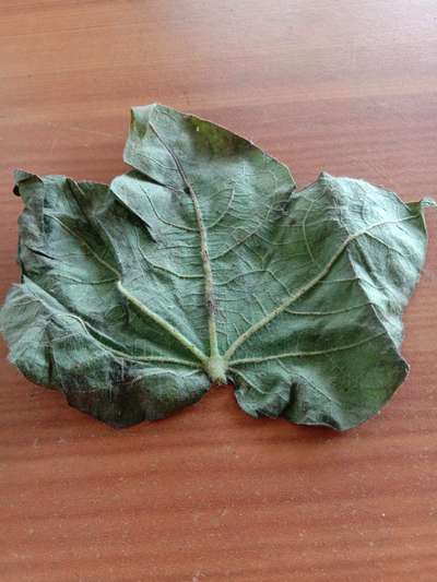 पानाच्या खालच्या बाजूला हिरवे आणि काळे किडे आहेत