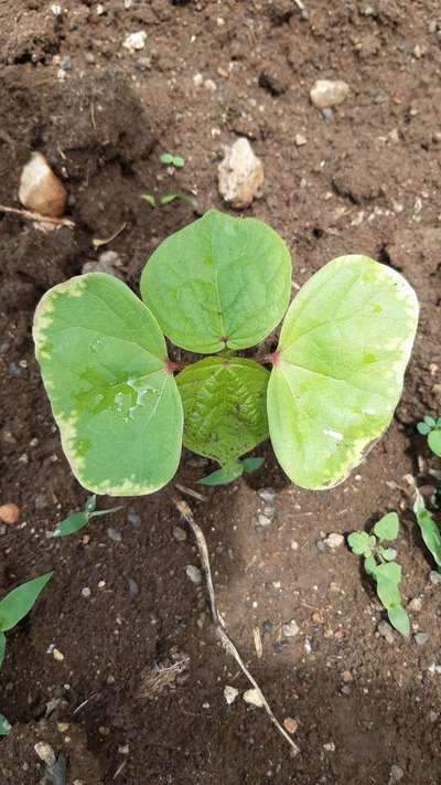 या चित्रात दाखवल्याप्रमाणे या पराटी चे पानांचा रंग काठावर पिवळसर होत चाललाय याबद्दल काही माहिती असल्यास कृपया सांगावे व हा कोणता रोग आहे का नैसर्गिकच हे पान अशी होतात आवश्यकता आहे का कोणत्या फवारणी आवश्यकता आहे