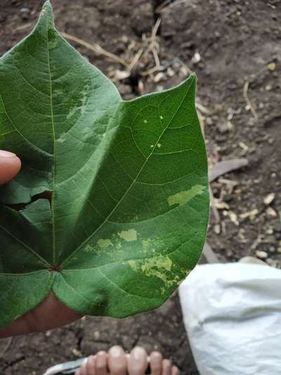 कापसाच्या पानावर पांढरे पिवळे डाग दिसू लागले आहेत