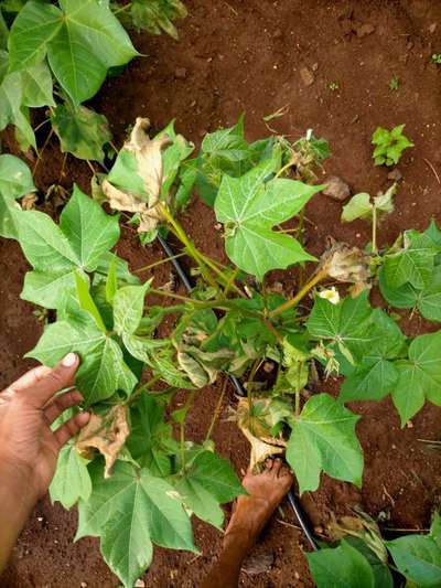कपाशीच्या पाणांन वर काडे डाग पडलेले आहेत