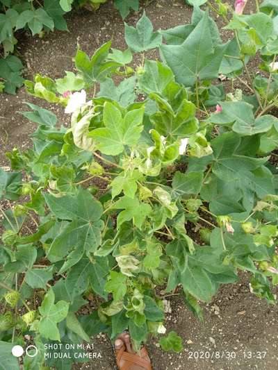 कपाशीची पाने गोळा होऊन सुकत आहेत