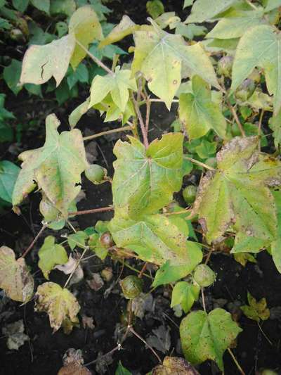 Hello dear Suraj Badlamwar how are you dear there is seem to be multiple issues like Anthracnose of Cotton Cotton Leafhopper Jassids dear spray difenaconozole or hexaconozole+flonicamid