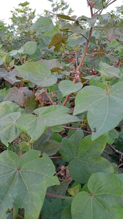 गंगाधर भांड Leaf Reddening of Cotton लाल्या रोगाचे कारणे व उपाय खालील प्रमाणे आहेत 1. माग्नीशियाम कमतरता: लागवड केल्या पासून माग्नीशियाम सल्फेट चा वापर करत चला। 2. तुडतुड्याचा प्रादुर्भाव: नियंत्रणासाठी लन्सर गोल्ड किंवा पेगॅसेस किंवा शिवेंटो ची फवारणी घ्या। 3. नत्राची कमतरता: युरिया किंवा अमोनियम सल्फेट किंवा 24:24 सारख्या खताने भर द्यावे व 19:19:19 सारख्या खताची फवारणी घ्या। 4. ज्यास्त पाऊस: पाऊस ज्यास्त झाल्यास शेतात साचलेल्या पाणी काढून योग्य निचरा होईल ह्याची काळजी घ्या। 5. पाण्याचा ताण: हे ताण टाळावे। 6. ज्यास्त तापमान: तापमान ज्यास्त होत असल्यास पानातून भाष्पीभवन कमी करण्यासाठी सिलिकॉन (ऑर्थो सिलिसिक ऍसिड) ची फवारणी घ्यावे।
